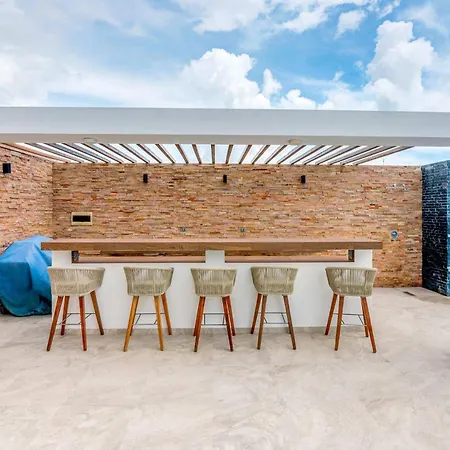 Adorable Rooftop Pool, Reliable Wifi, Near 5Th Ave ligt op circa 25-minuten loopafstand van Centro Maya en nodigt gasten uit om te ontspannen op een patio.